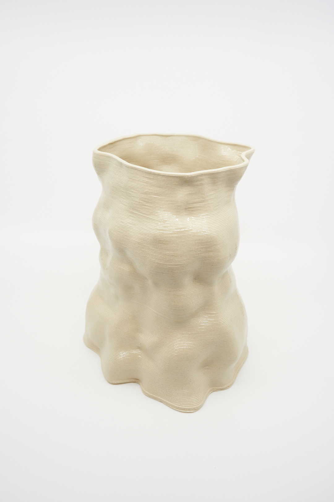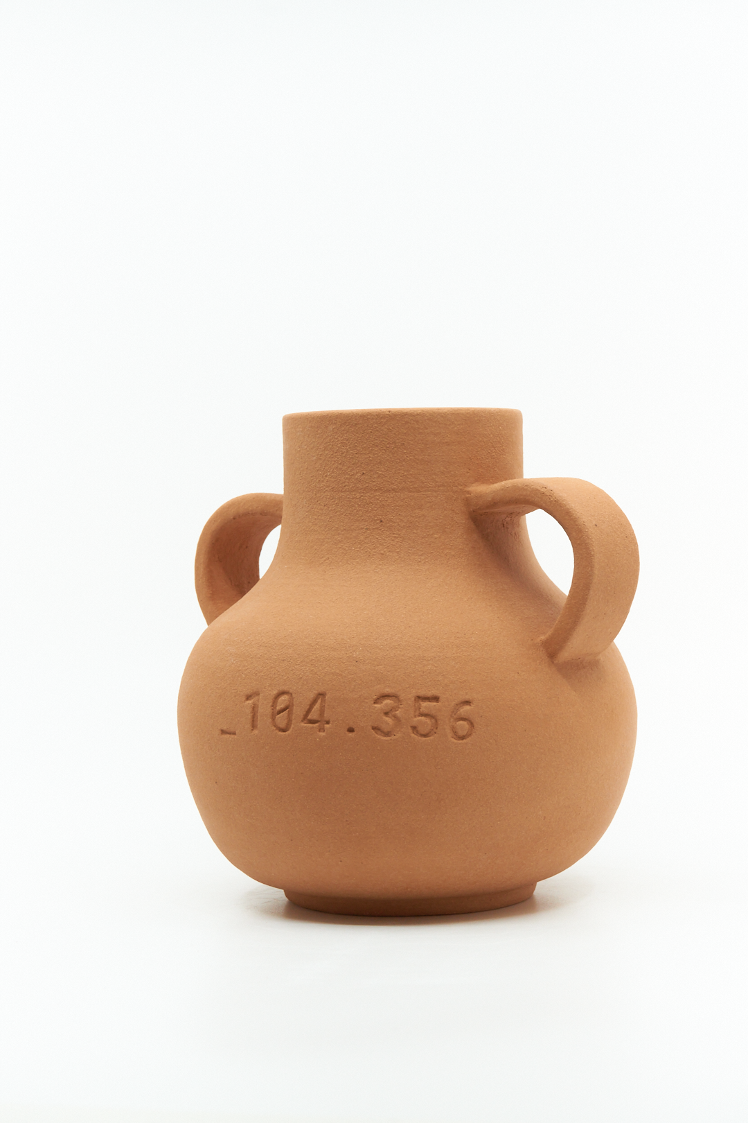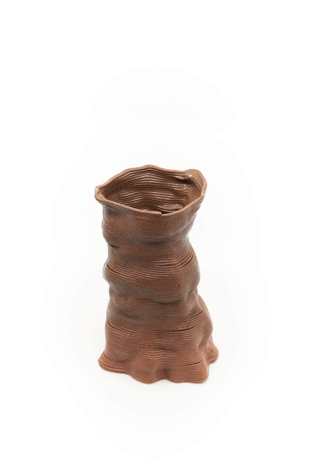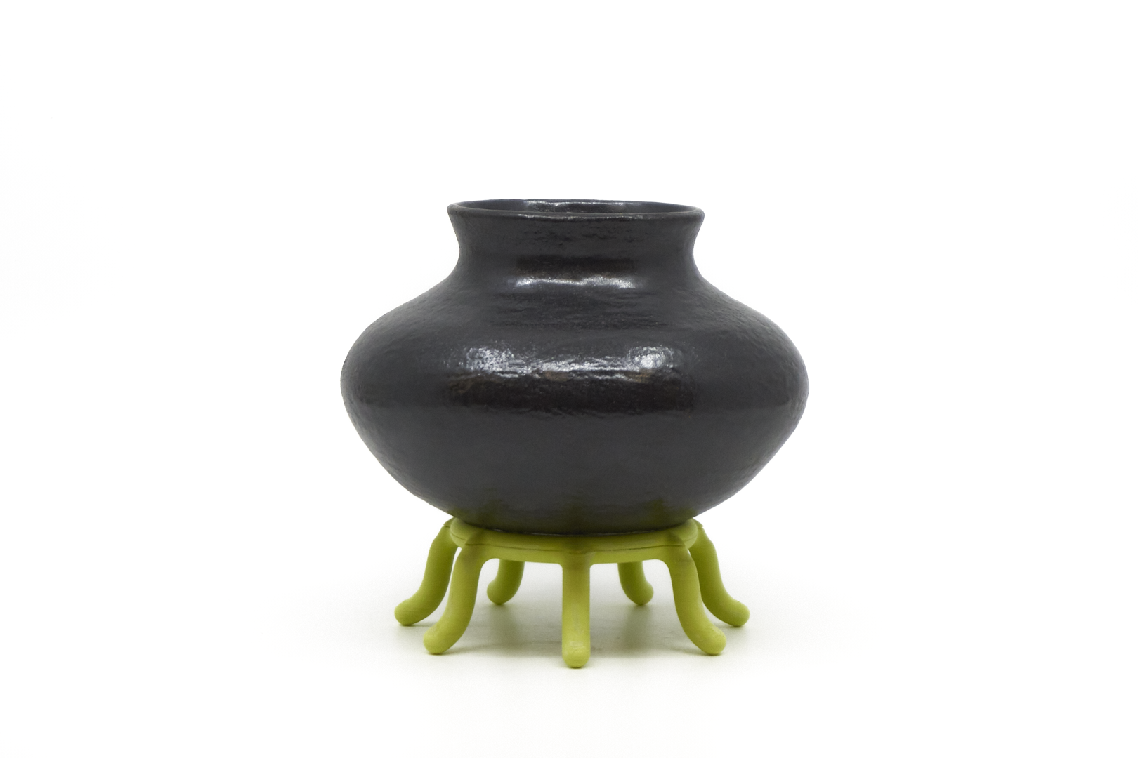 hand-built ceramic vessel juxtaposes traditional pottery aesthetics with default manufacturing aesthetic as an icon of handmade and manufactured duality