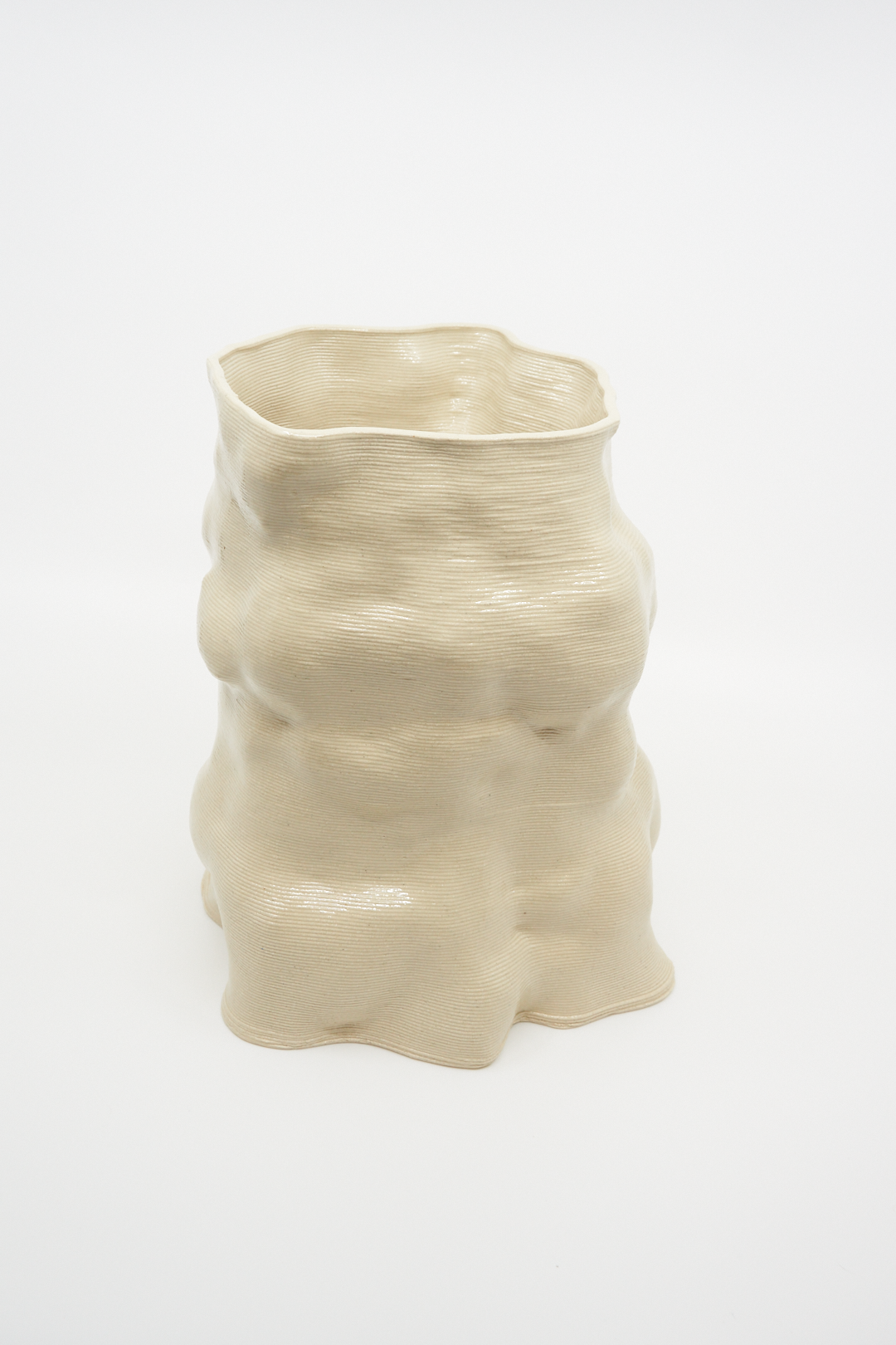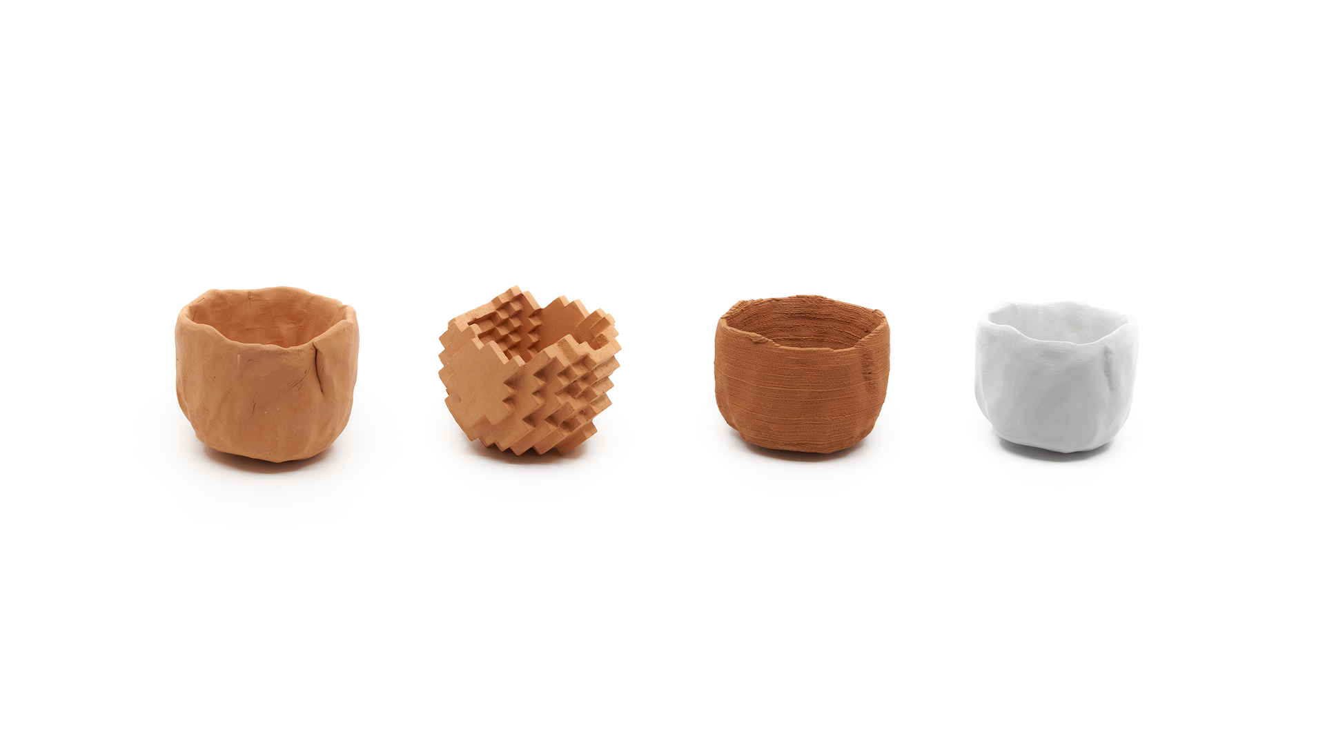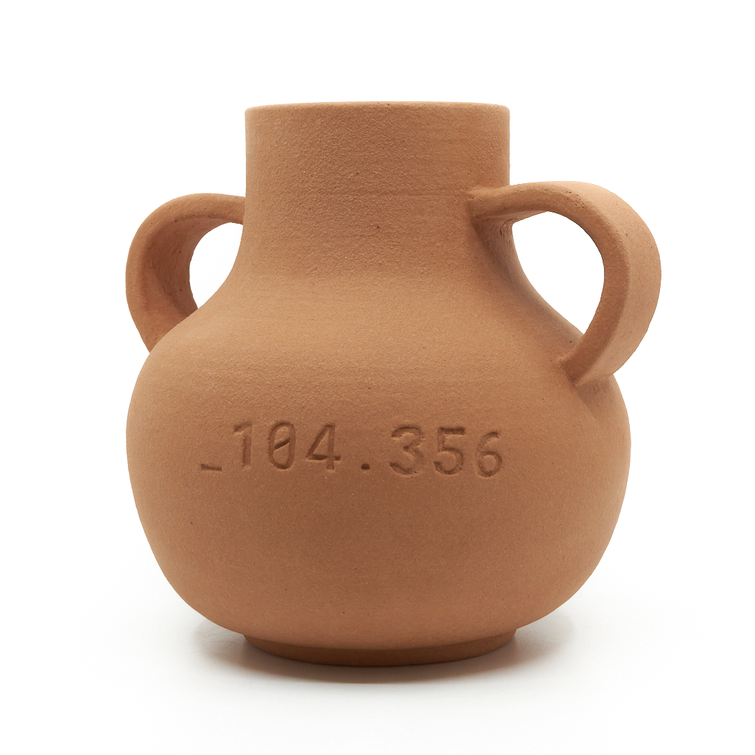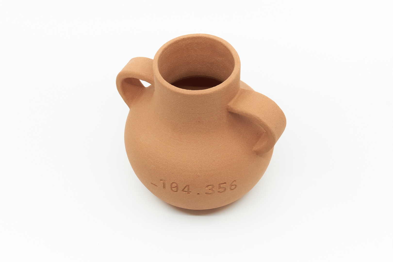 hand-built ceramic vessel juxtaposes traditional pottery aesthetics with default manufacturing aesthetic as an icon of handmade and manufactured duality