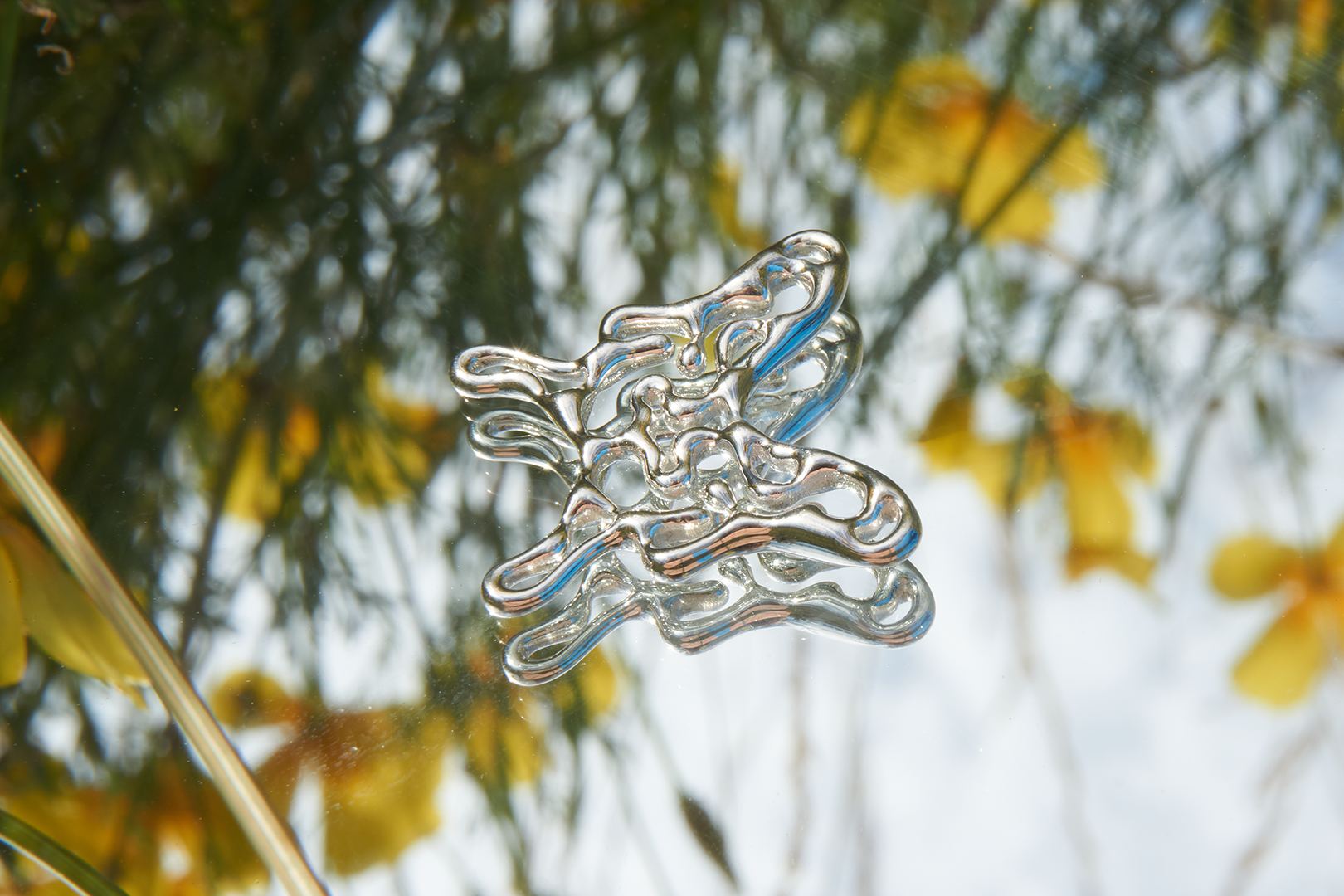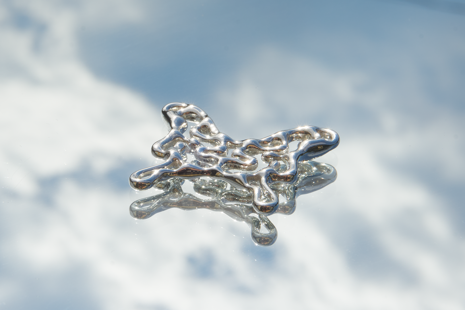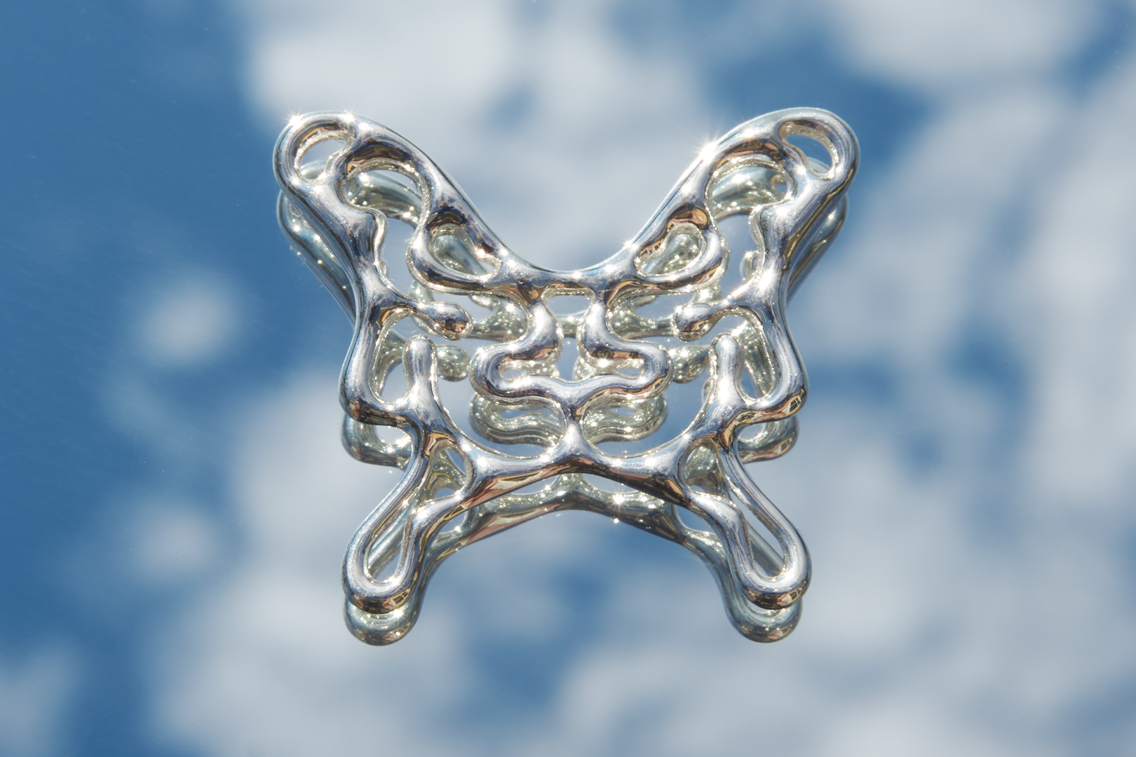 wearable artifact modeled in blender and 3d printed in sterling silver