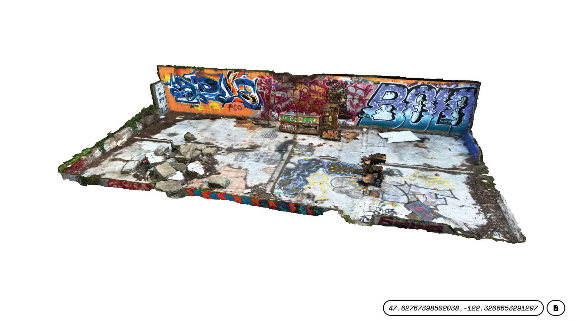 I am consistently in awe with the capabilities of photogrammetry, especially the fidelity that can be accomplished using the accessible and pocketable cellphone camera. This project is my initial endeavor to create a scalable system to capture, share, and archive particularly ephemeral public environments.