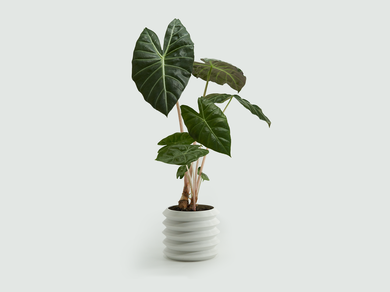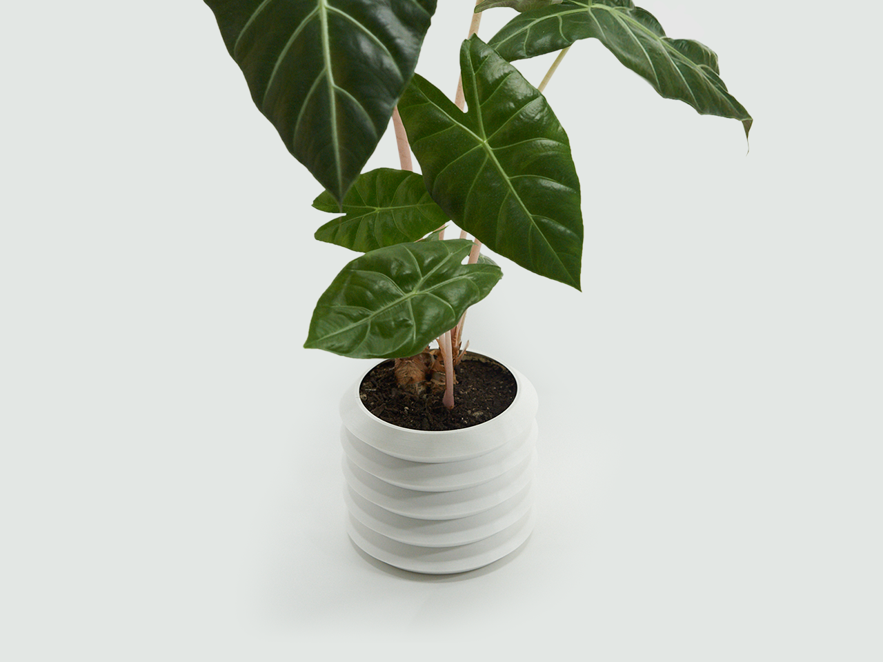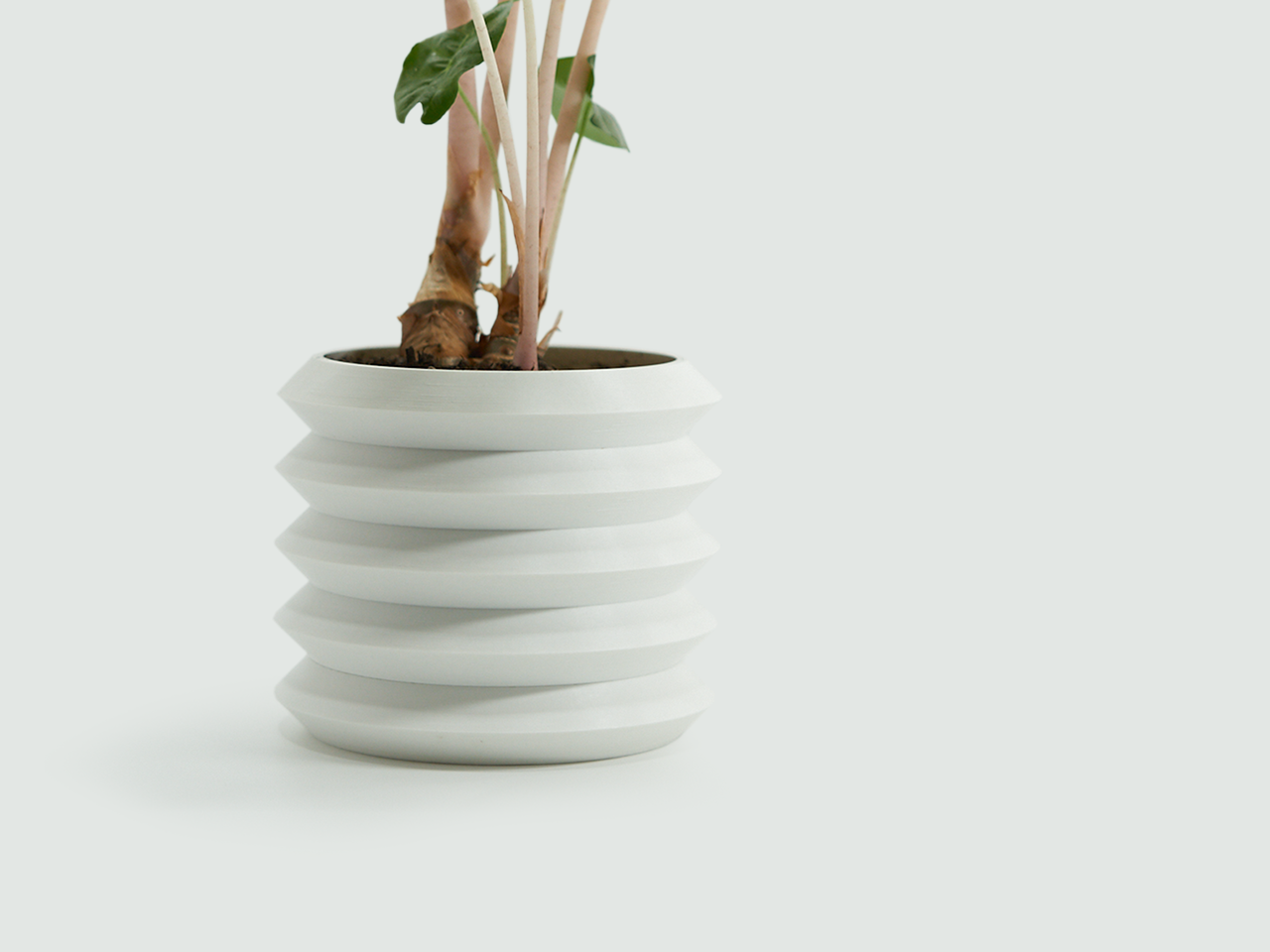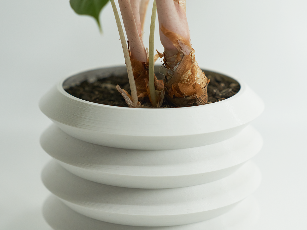 This 3d printed planter is designed as a two part system which seamlessly integrates the snap on drainage tray with the form of the piece.
